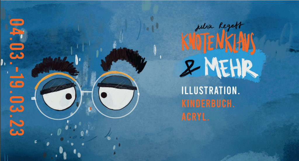 Wie entsteht eigentlich ein Kinderbuch? Von der ersten Skizze bis hin zum fertigen Werk: Die Autorin des Kinderbuchs „Lass es raus, Knotenklaus“, die in Dorsten aufgewachsen ist, gibt in ihrer Ausstellung „Knotenklaus & mehr“ diverse Einblicke in den Prozess und die Welt der Kinderbuchillustrationen. Zusätzlich zeigt Julia Regett verschiedene Werke aus dem Bereich der Cyanotypie und Acrylmalerei: Die Interpretation von Elasmoidschuppen von Flussbarsch, Hecht und Forelle sowie einige Cyanotypie-Drucke auf Papier & Leinwand mit dem Titel „Sigmund Freud und der Aal.“