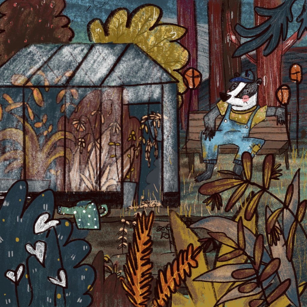 Kinderbuchillustrationen „Morti, der Maulwurf“ – Projekt 2021 Dachs Dagmar